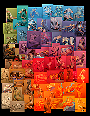 Drawings from the last 4 months, chromatically arranged